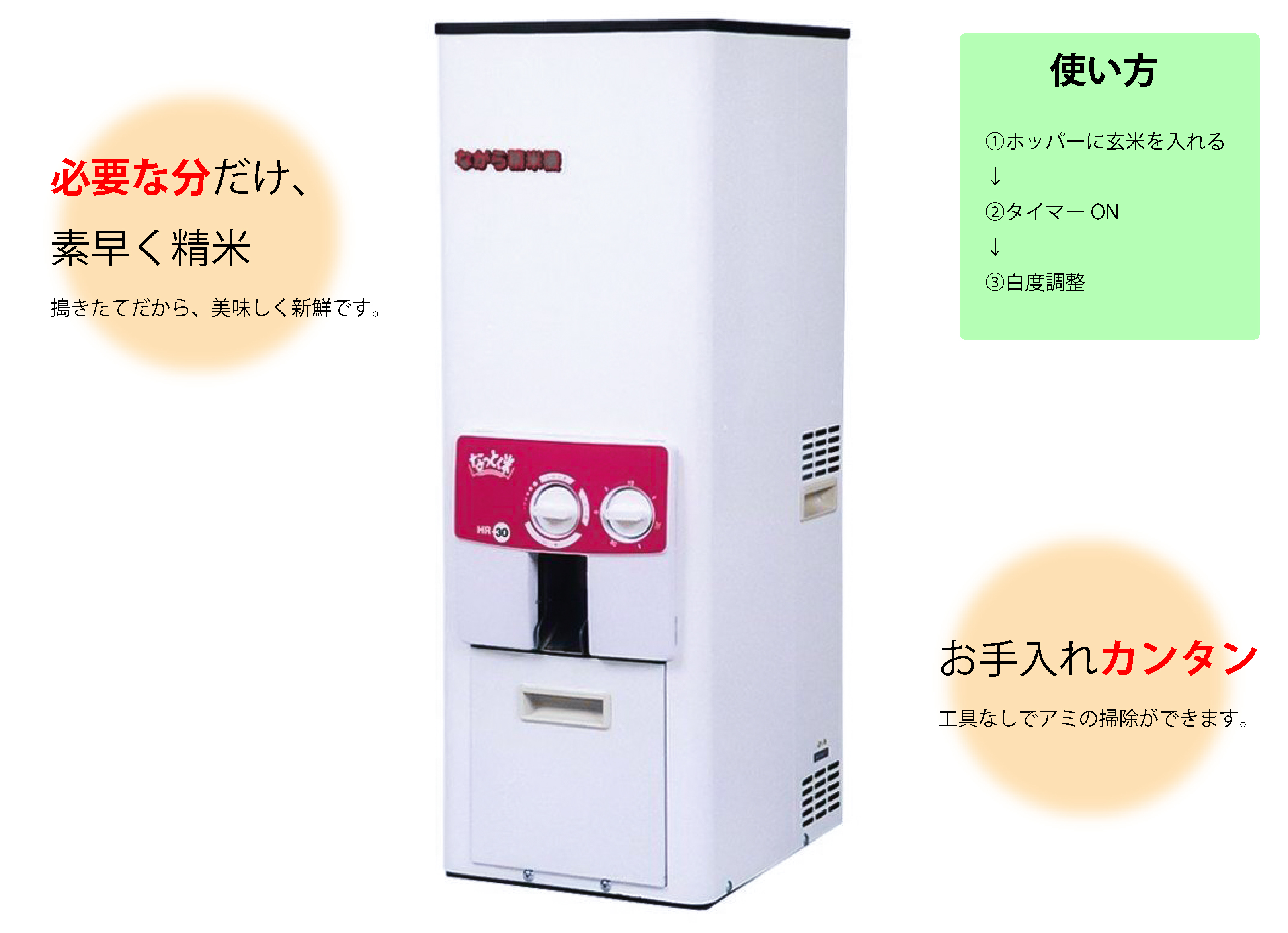 分づき米から白米まで、精米度調整!!