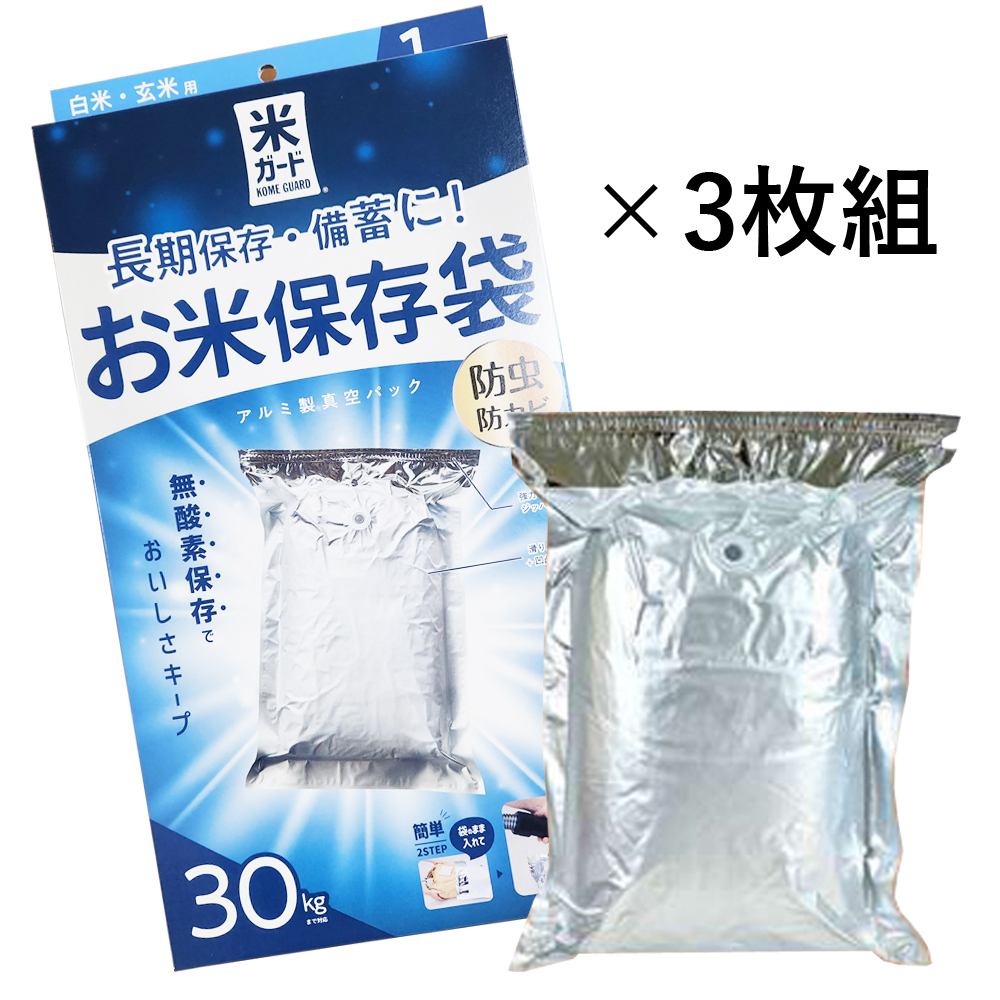 【3枚組】【~30kg用】 極厚米ガード 米保存袋 脱酸素剤入り 真空パック 防虫 防カビ
